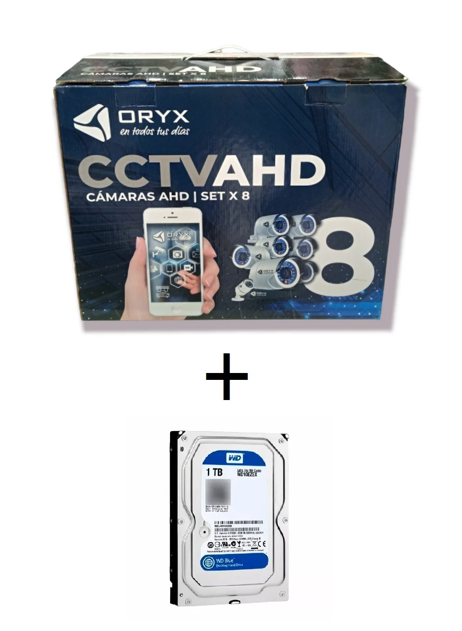 KIT DE CAMARAS  ORYX   8 CAMARAS   CON CABLES /  INDOOR Y OUTDOOR / FULL HD / CABLE S17 METROS DE LARGO / CONTROL REMOTO / Y MOUSE  con * DISCO 1 TERABYTE *